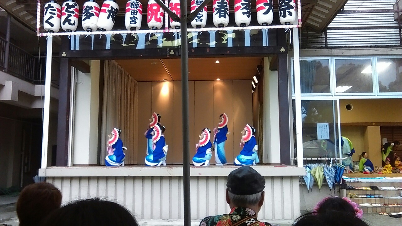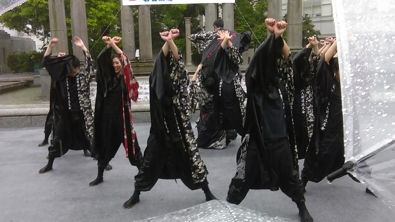 However I still got to enjoy the shows of some of Fukuokas clubs, that use the chance, that the audience of the festival presents, and do performances all around Fukuoka on mostly roofed stages. Local dance, theatre, drumming and other clubs performed on a stage at the Kushida-shrine, an important point in most of Hakatas festivities. Also some of the procession groups gave performances before the parade and also after it had been canceled.